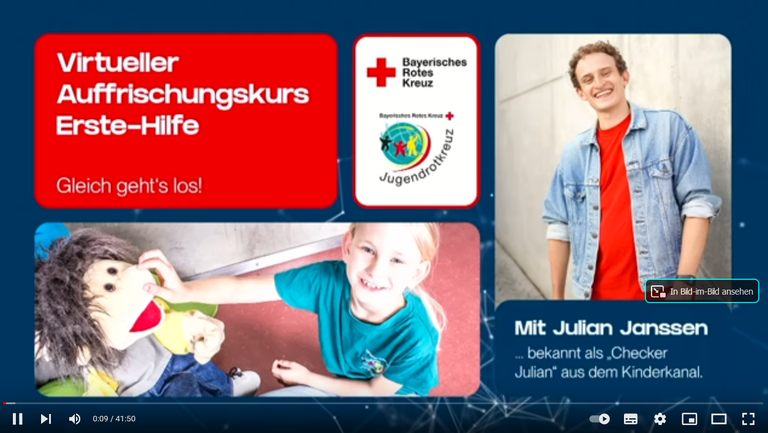 Das Bayerische Rote Kreuz veranstaltet zum Welt-Erste-Hilfe-Tag am 10.09.2022 drei virtuelle "Erste Hilfe"-Kurse, um die wichtigen Kenntnisse der Ersten Hilfe aufzufrischen und vor allem dazu aufzurufen, zeitnah einen Erste-Hilfe-Kurs in der Nähe zu besuchen. Denn: Im Notfall muss jeder Handgriff sitzen!